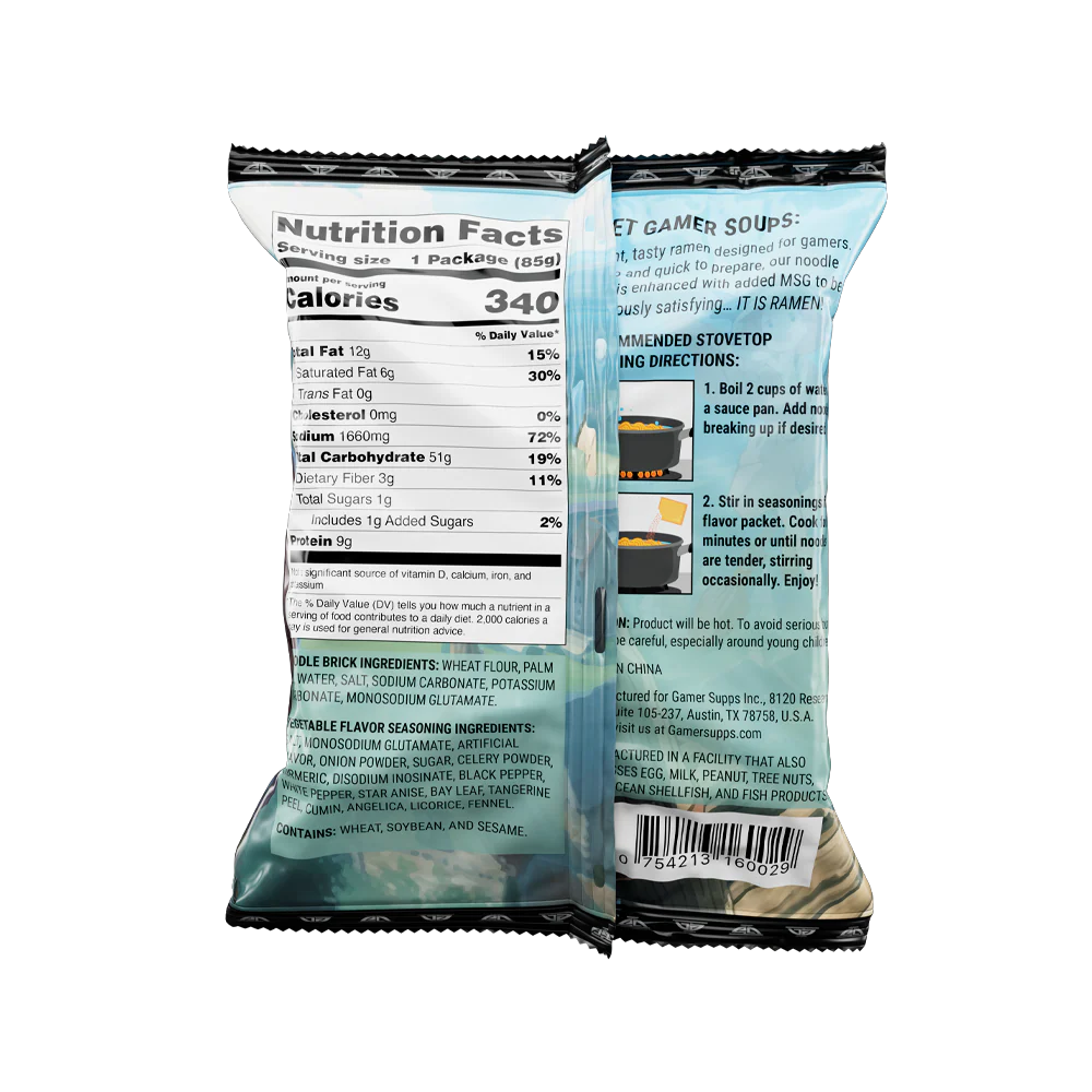 Instant, tasty ramen designed for gamers. Cheap and quick to prepare, our noodle soup is enhanced with added MSG to be deliciously satisfying... IT'S RAMEN!!!